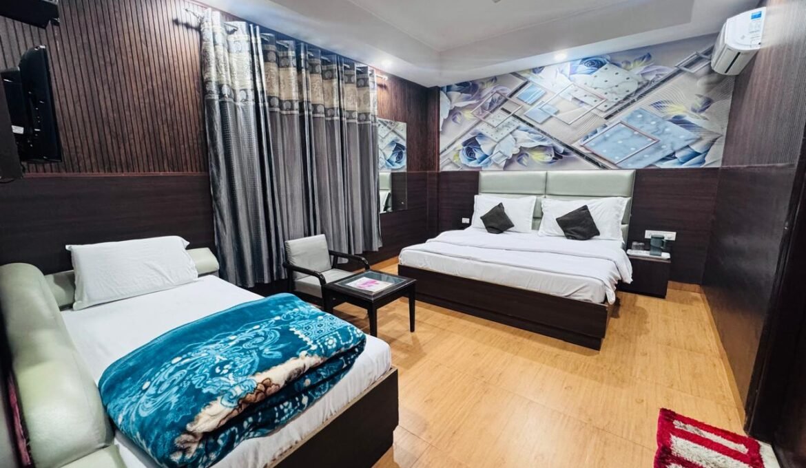 Our Premium Deluxe Triple Bed (A/C) Room is designed for families and small groups seeking comfort, space, and convenience. The room features a comfortable triple bed setup with premium mattresses, fresh linens, and air-conditioning for a relaxing stay. Elegant interiors, warm lighting, and modern furnishings create a pleasant ambience. The attached modern bathroom includes 24/7 hot & cold water, clean towels, and complimentary toiletries—making it an ideal choice for both leisure and business stays.